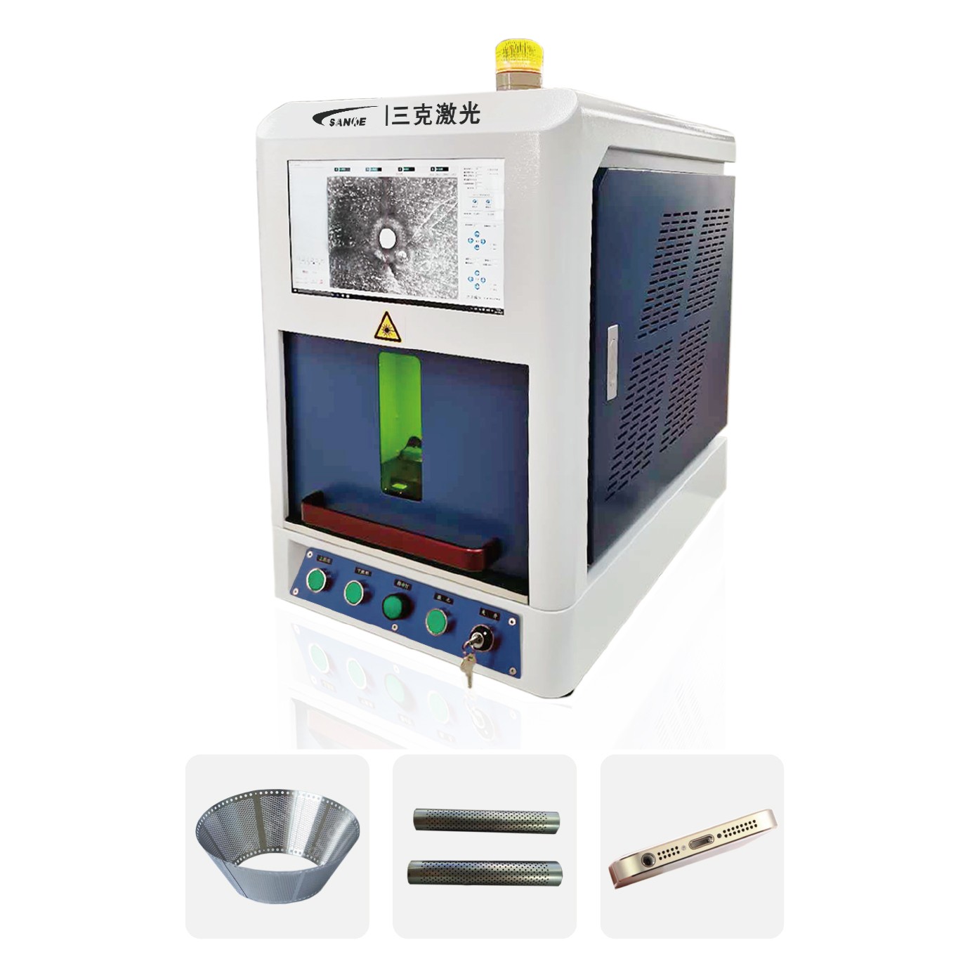 本機(jī)是針對(duì)實(shí)驗(yàn)室壓力試驗(yàn)課題專業(yè)定制的一款高精度激 光設(shè)備,具有兼容錸片加壓前后的各種打孔、切割的特點(diǎn)。